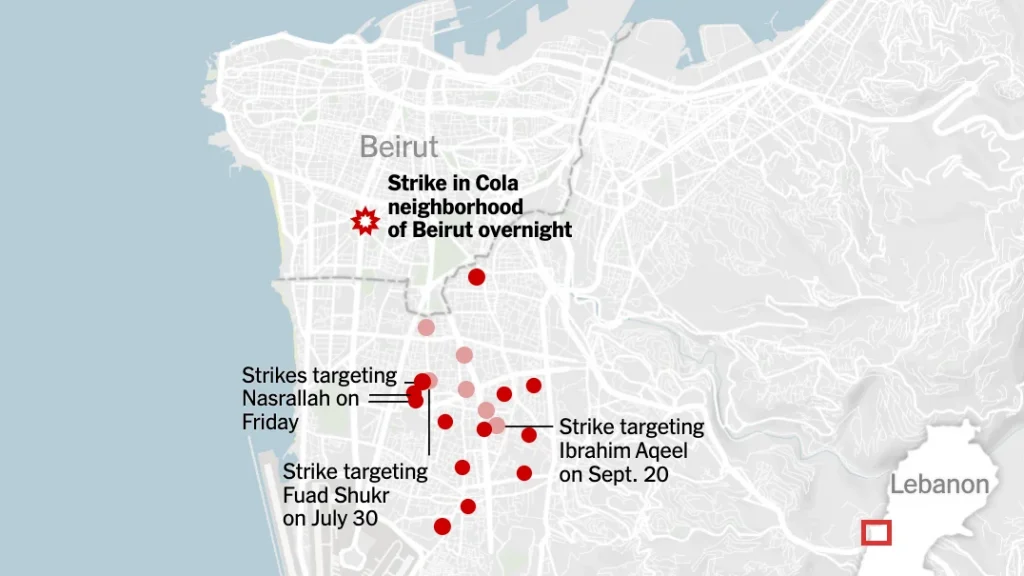गुरुवार की रात, इजरायली वायुसेना ने बेरूत के उपनगर में एक बम गिराया। यह हमला उस स्थान पर हुआ जो पिछले कुछ महीनों से इजरायली सुरक्षा बलों के लिए एक चिंता का विषय रहा है। स्थानीय लोगों का कहना है कि यह हमला लगभग 10 बजे हुआ, जब लोग अपने दैनिक कार्यों में व्यस्त थे।