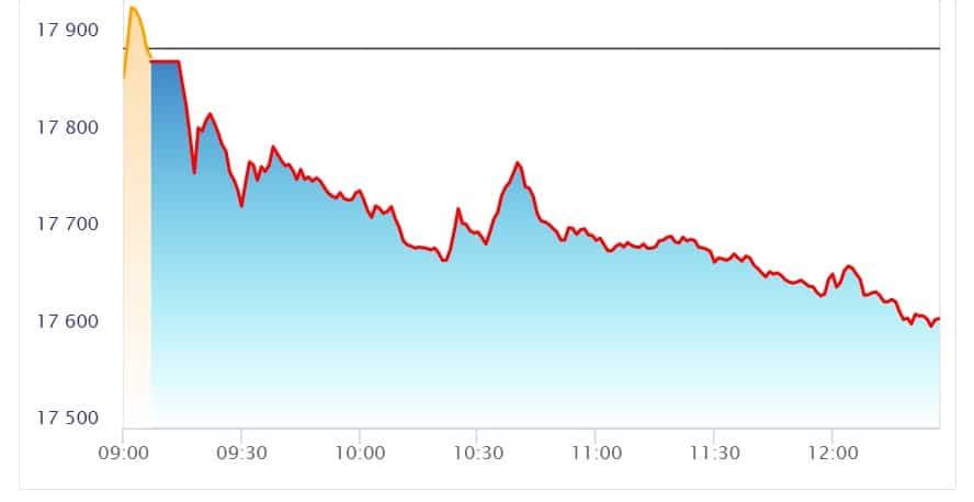 शेयर मार्केट: तेज उछाल के बाद बाजार में गिरावट, सेंसेक्स और निफ्टी लाल निशान में
