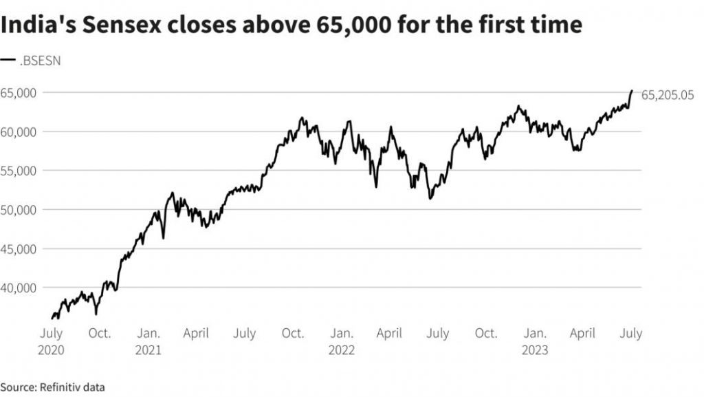 शेयर बाजार ने एक बार फिर से रौनक वापसी की है। सेंसेक्स ने 640 अंकों की बढ़त के साथ 67,000 के स्तर को पार किया, जिससे निवेशकों की धनराशि में ₹6.5 लाख करोड़ का इजाफा हुआ। यह स्थिति देश के बाजार के लिए एक सकारात्मक संकेत है और निवेशकों के लिए यह एक सुनहरा अवसर हो सकता है।
