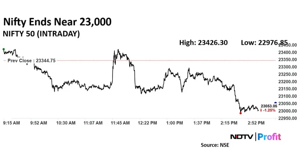 शेयर बाजार में भारी गिरावट! निवेशकों के ₹8.4 लाख करोड़ डूबे, Sensex 1800 अंक और Nifty 23300 के नीचे