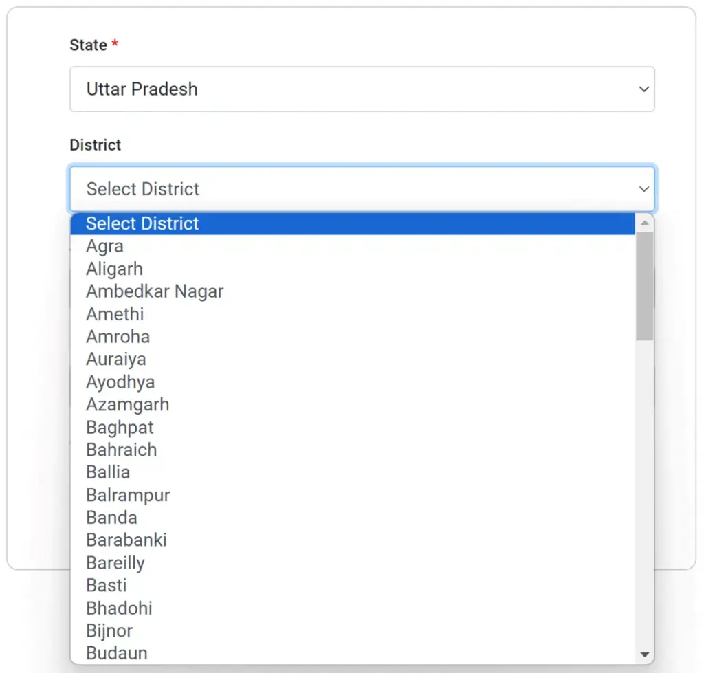 • राज्य का चयन करें और आवश्यक विवरण भरें।